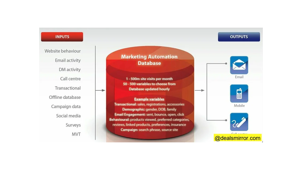 As illustrated, data streams in from diverse sources. This makes it absolutely vital that your marketing automation database is purpose-built to seamlessly handle all these disparate inputs, rather than simply being an add-on to an existing system lacking such comprehensive capabilities.